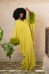 - COMPOSITION : Crepe fabric and 100% Ostrich feathers
